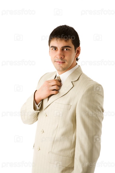 Молодой человек в светлом пиджаке, изолированный на белом фоне