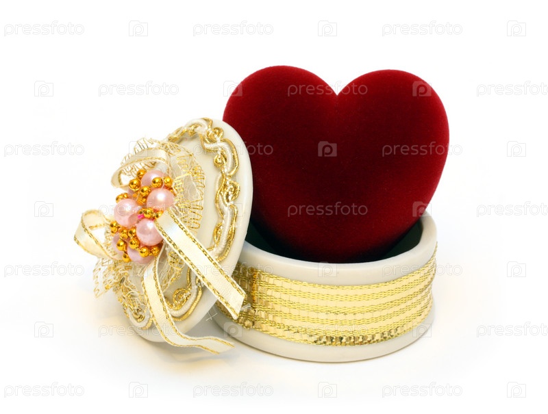 Сердце в коробочке на белом фоне