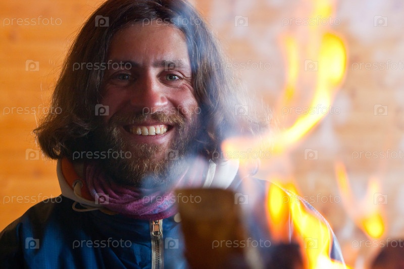 Портрет мужчины, смотрящего на огонь