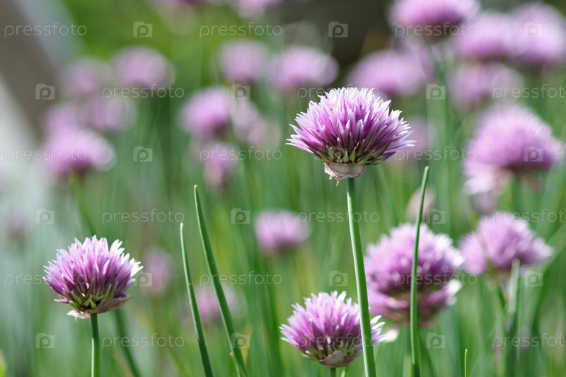 Сиреневые головки цветущего лука