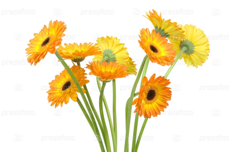 Желтые герберы на белом фоне