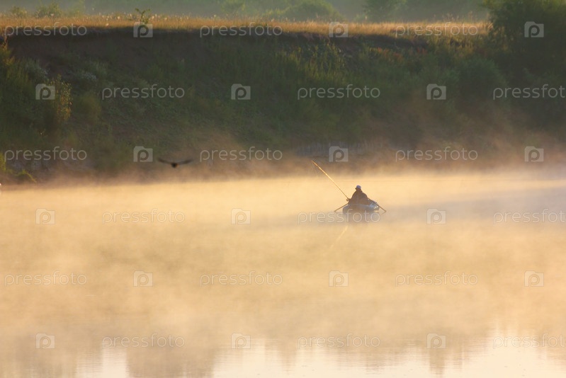 Рыбак на реке в тумане
