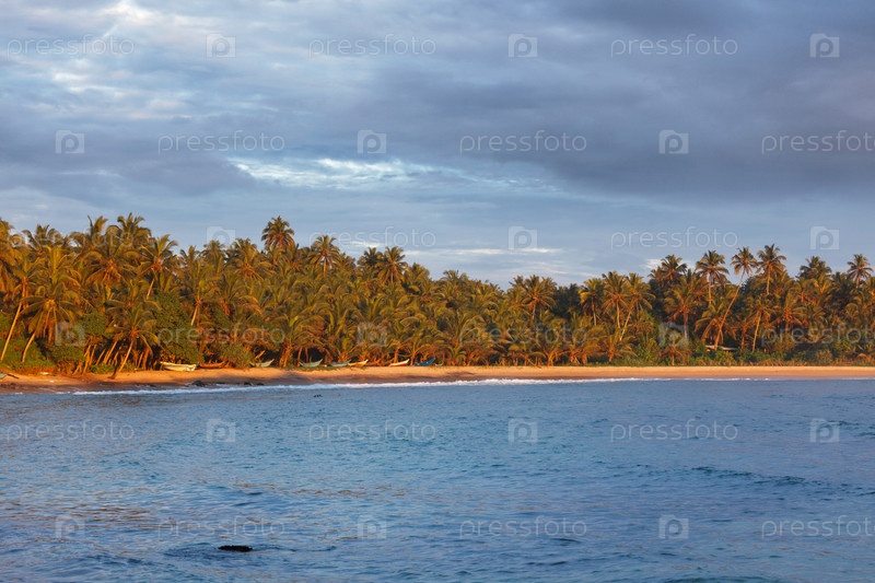 Рыбацкие лодки на пляже на закате, Шри-Ланка