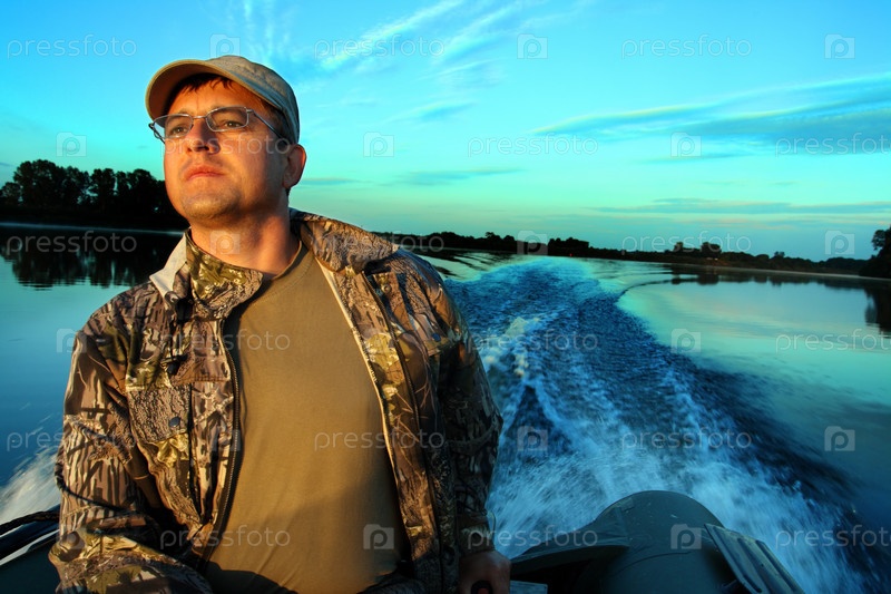 Портрет рыбака на моторной лодке