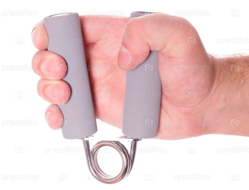 Рука с серым весенним тренером изолирована на белом