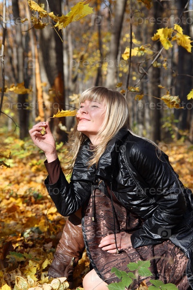 Молодая девушка в осеннем лесу