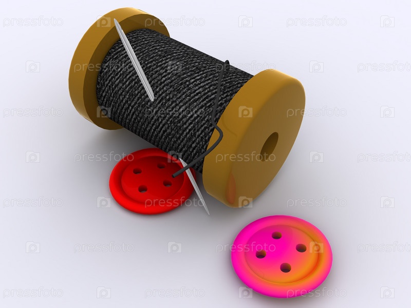 Катушка с нитками, игла и пуговицы