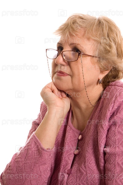 Пожилая женщина на белом фоне