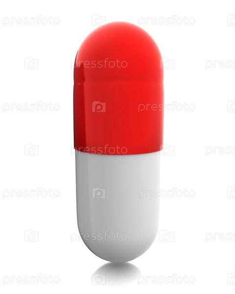 Красно-белая пилюля на белом фоне
