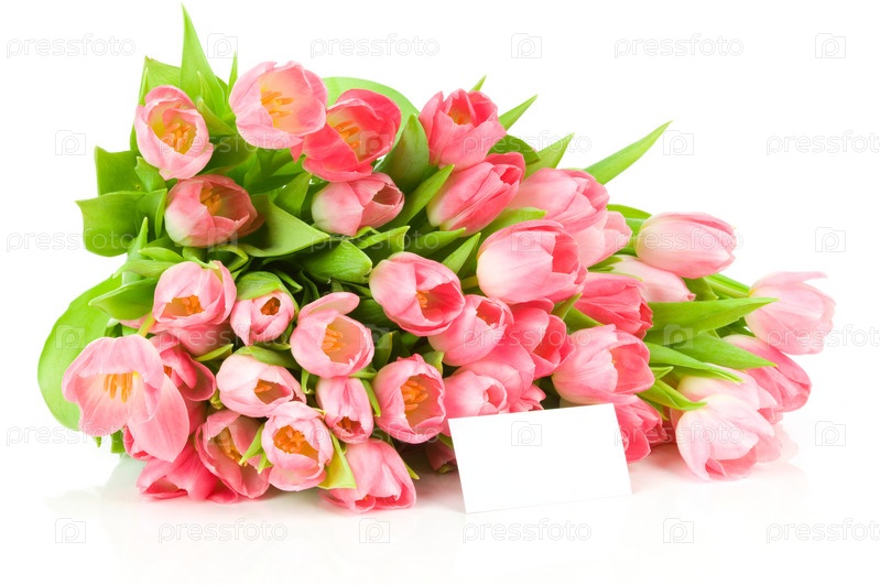Красивые тюльпаны с открыткой для текста на белом фоне