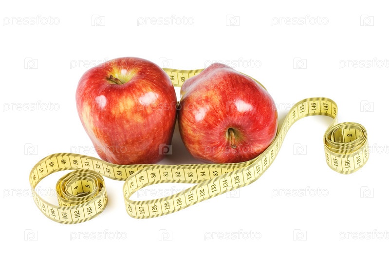 Красные яблоки и измерительная лента изолированы на белом фоне
