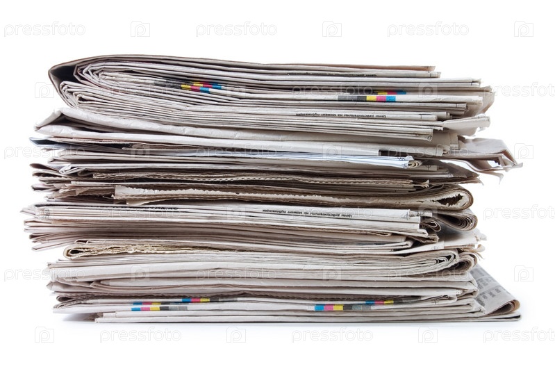 Стопка газет на белом фоне
