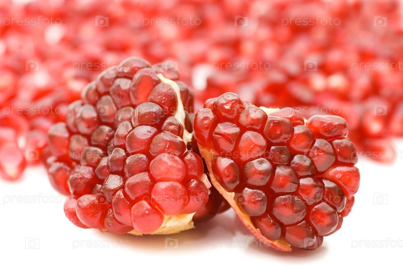 Зерна граната на белом фоне