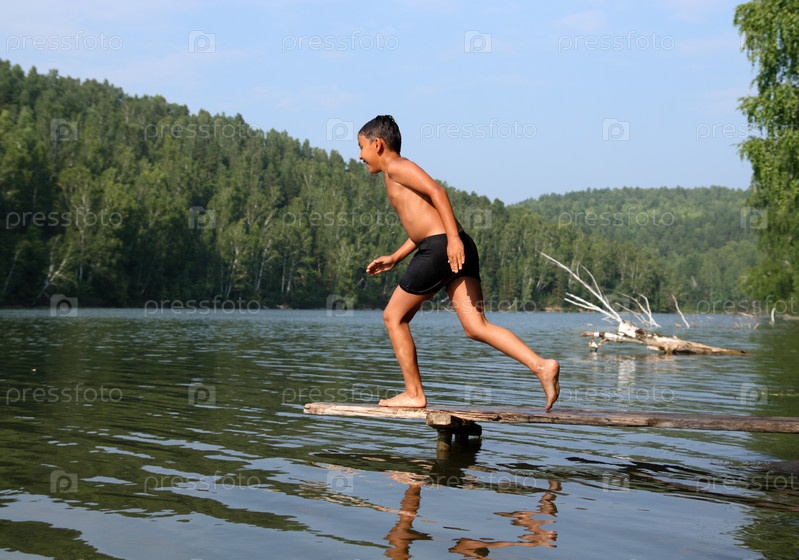 Мальчик играет у реки