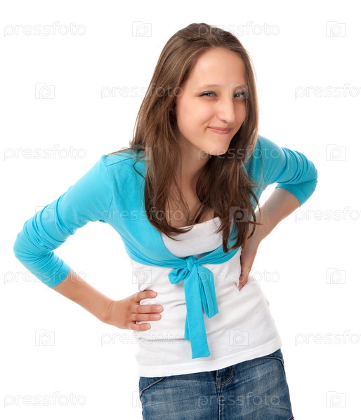 Портрет молодой девушки на белом фоне