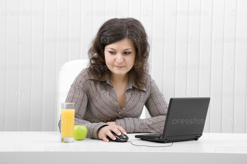 Бизнес-леди обедает на рабочем месте