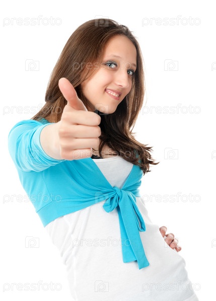 Портрет молодой улыбающейся девушки на белом фоне