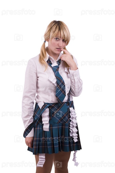 Девушка - школьница со шпаргалками
