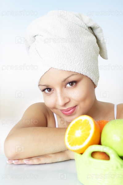 Очаровательная девушка с фруктами