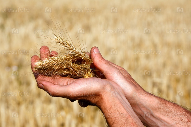Колосья ржи в ладонях человека