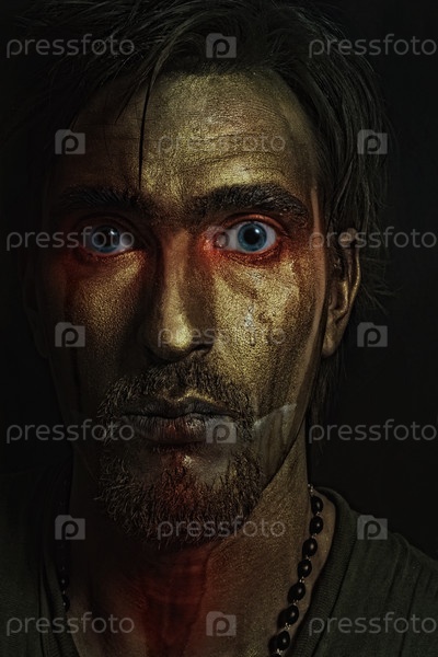 Мужчина с серебристым макияжем в темноте