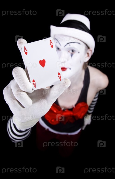 Мим в белой шляпе с тузом червей