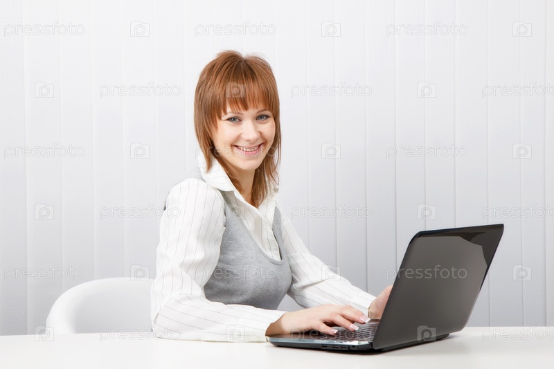 Привлекательная девушка работает в офисе