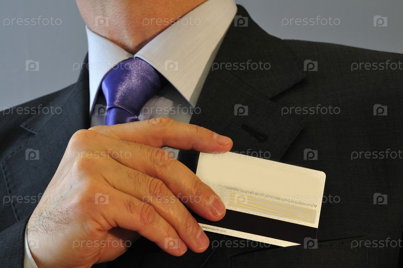 Мужчина в деловом костюме с кредитной картой