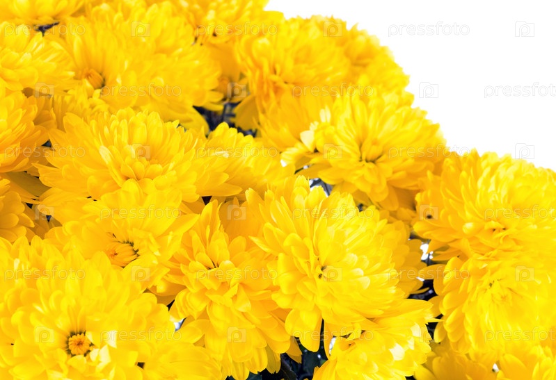 Красивые желтые хризантемы на белом фоне