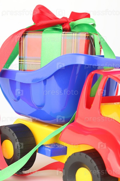 Игрушечный грузовичок с подарком