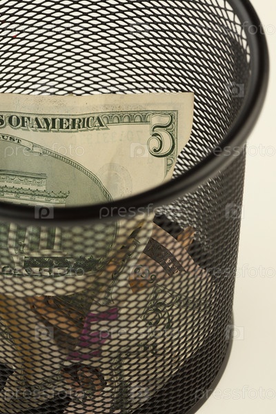 Доллары в мусорной корзине