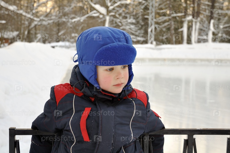 Грустный маленький мальчик у катка