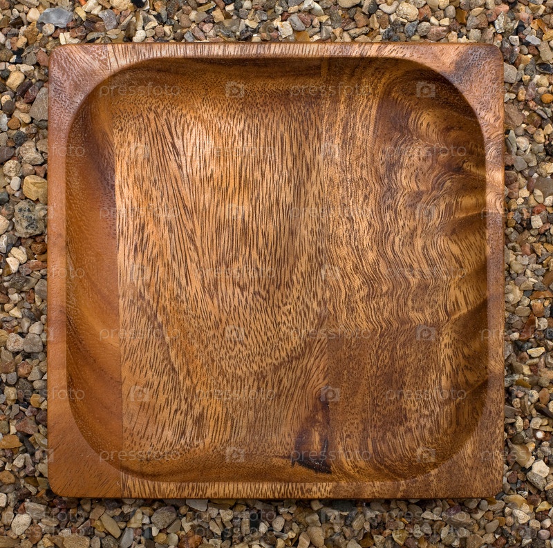 Деревянная квадратная плита верхний вид против камней