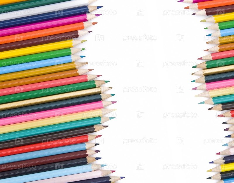 Ассортимент цветных карандашей с тенью на белом фоне