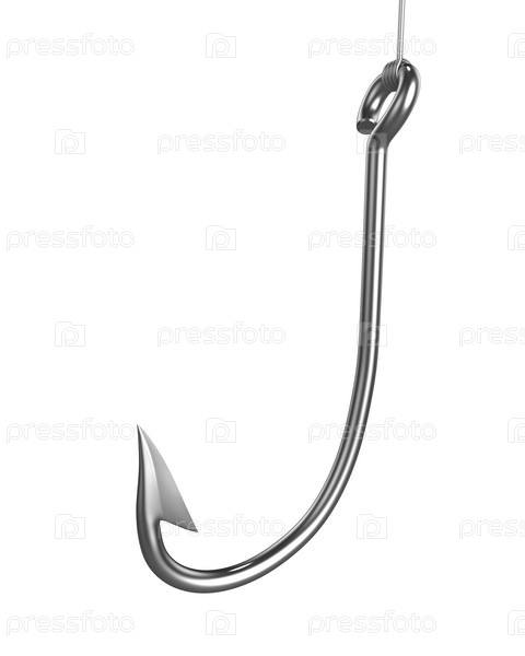Рыболовный крючок на белом фоне