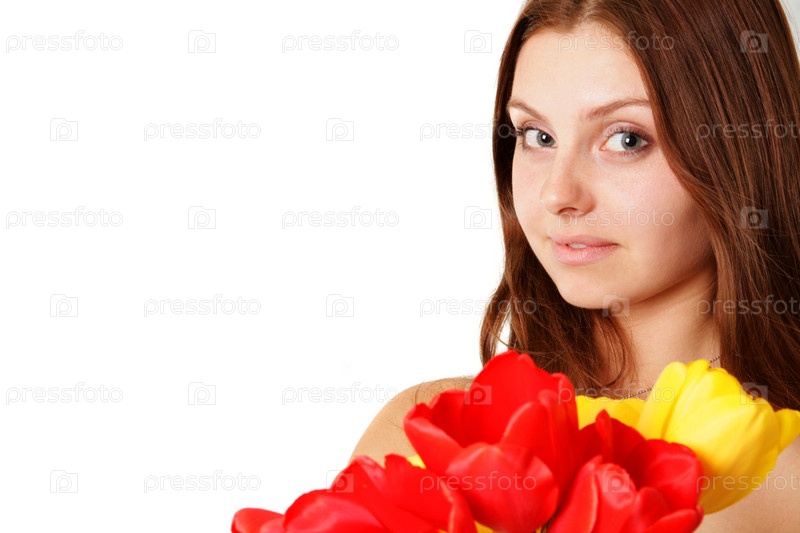 Девушка с тюльпанами, крупный план
