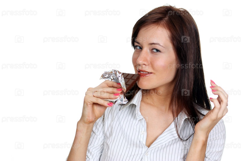 Девушка ест шоколад