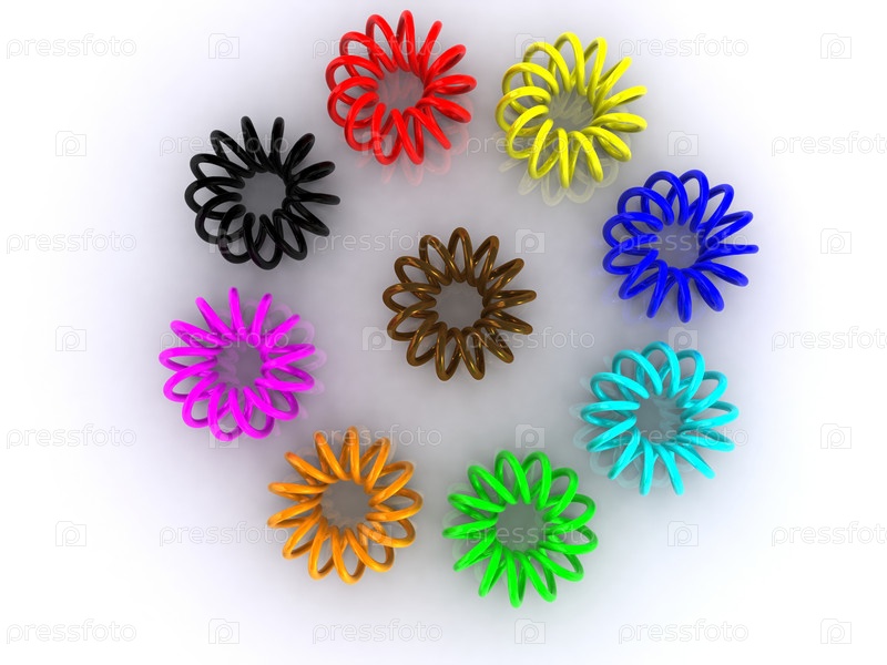 Разноцветные пружинки на бело-сером фоне