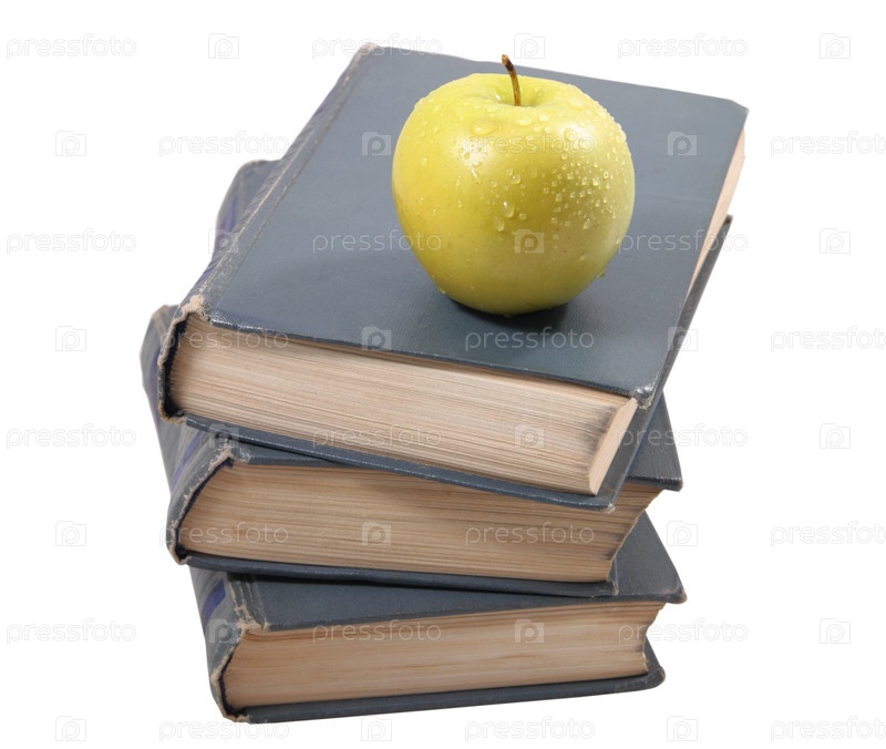 Стопка книг с яблоком