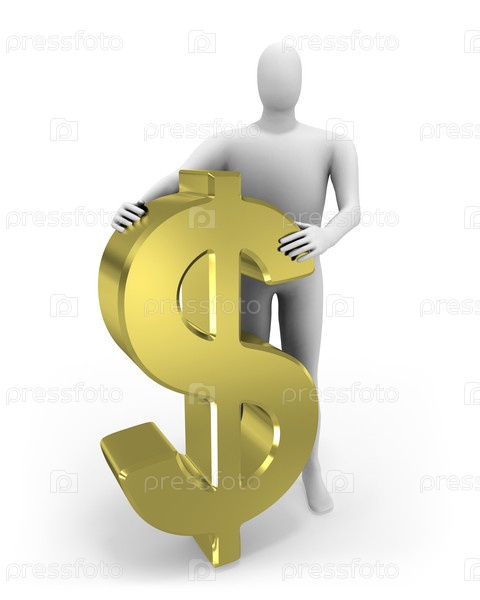 Символический человек держится за доллар двумя руками