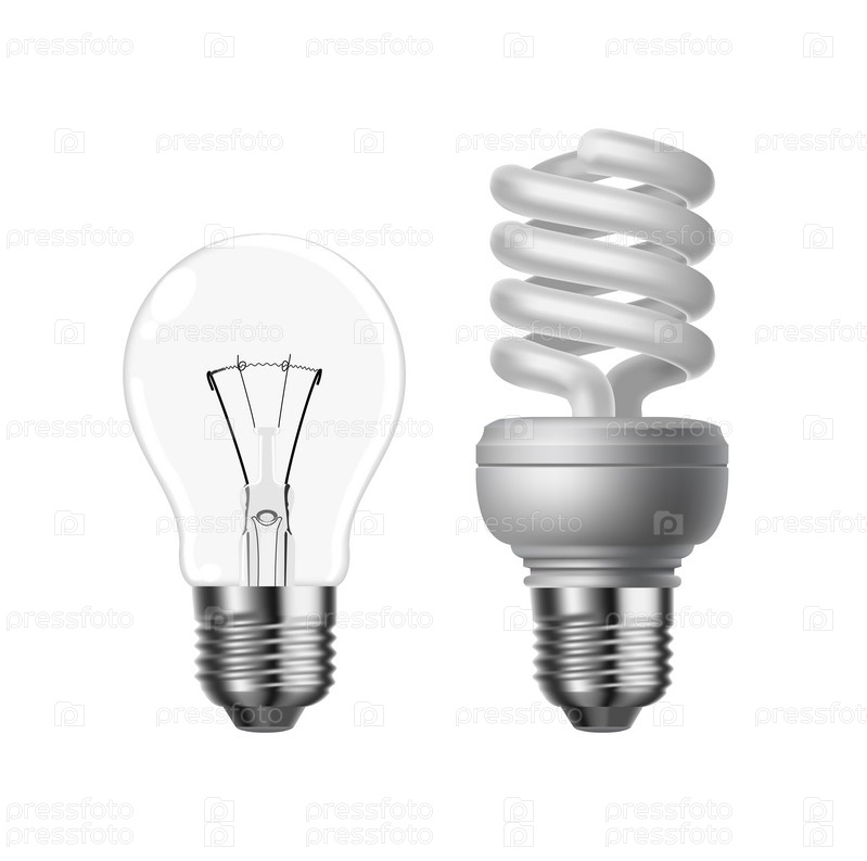 Векторный вольфрам и энергосберегающая лампочка на белом фоне