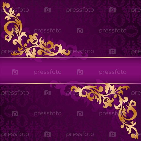 Лиловый баннер с золотым витиеватым орнаментом