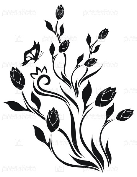 Цветочный рисунок тюльпана с бабочкой