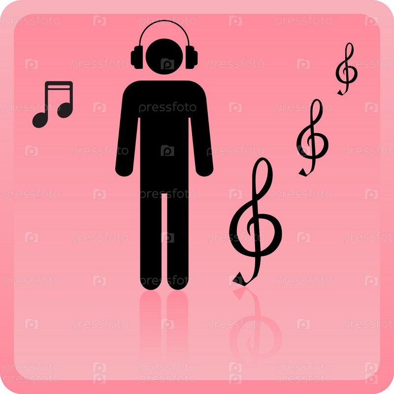 Символ человека в наушниках с нотами на розовом фоне