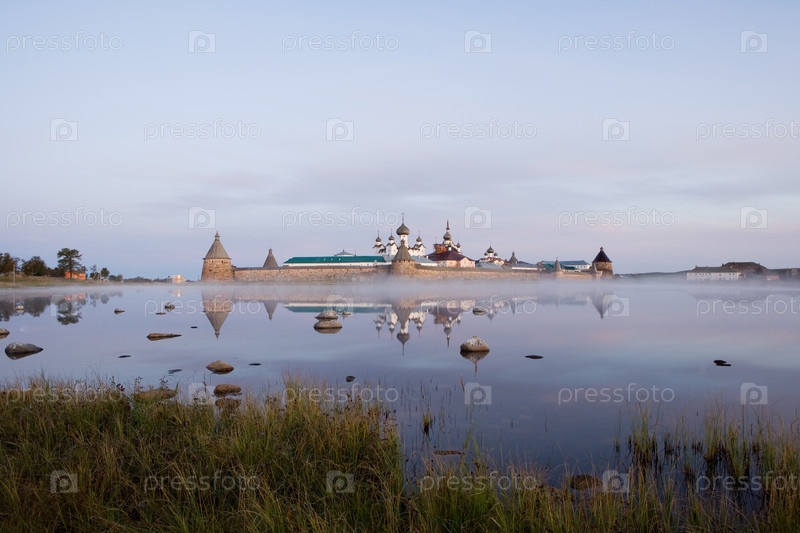 Спасо-Преображенский Соловецкий монастырь утром со стороны Святого озера