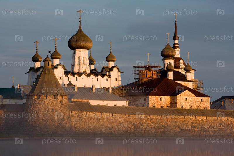 Спасо-Преображенский Соловецкий монастырь утром со стороны Святого озера