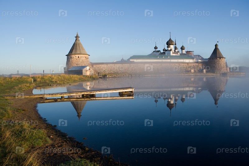Спасо-Преображенский Соловецкий монастырь утром со стороны Святого озера