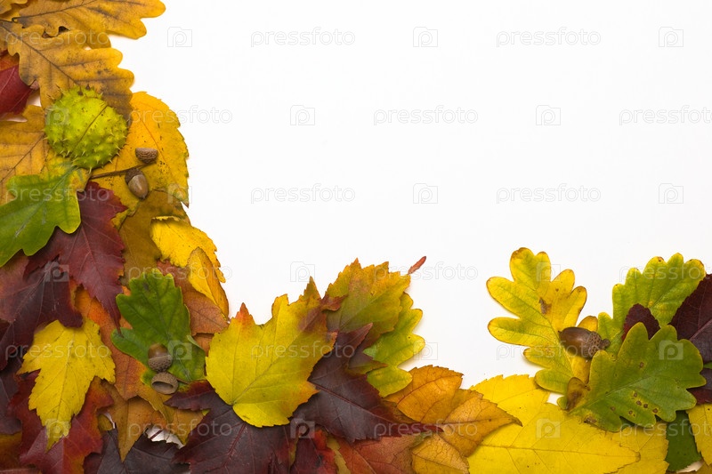 Рамка из разноцветных листьев на белом фоне