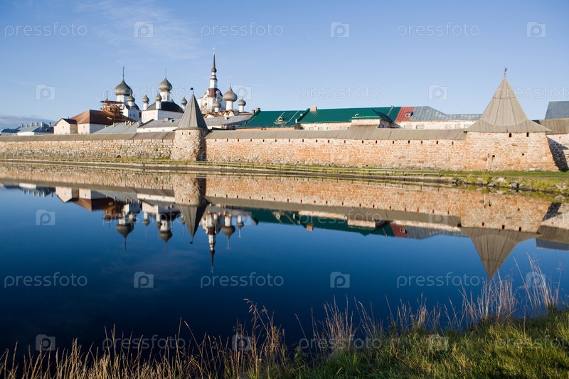 Спасо-Преображенский Соловецкий монастырь утром со стороны Святого озера