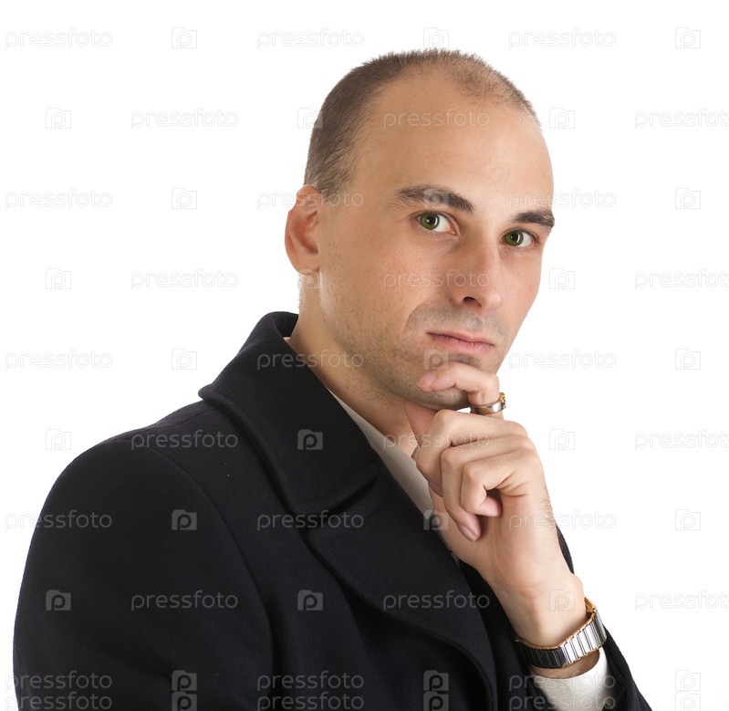Мыслящий бизнесмен изолированный на белом